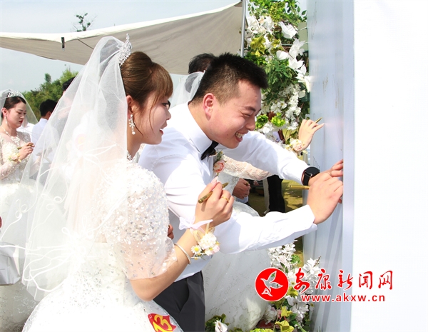 活動現場,伴隨著歡快悠揚的樂曲聲,新人依次步入紅毯,在愛情宣言墻上共同寫下幸福宣言;隨后,一對金婚夫婦為各位新人傳授幸;橐龅“秘訣”。在喜慶歡快的氛圍中,婚禮儀式進入最神圣的時刻,新人們在主持人引領下,完成婚姻宣誓、感恩父母和證婚祝福等儀式,一句句樸實無華又感人肺腑的話語,凝成一個個溫馨浪漫的永恒瞬間;顒游猜暎為新人們送上了“安安”“康康”毛絨玩具,祝愿他們幸福安康、生活美好。