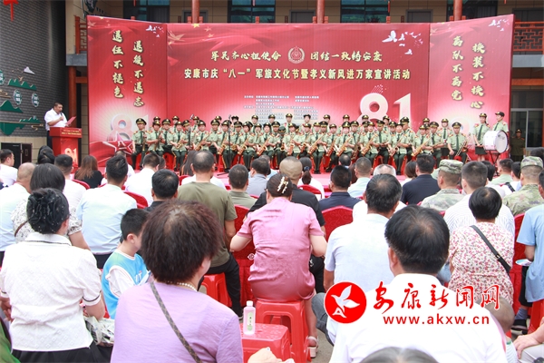 本網訊(記者 黃慧慧 通訊員 王典根)軍愛民,民擁軍,軍民融合情誼深。7月27日,由安康市雙擁工作領導小組辦公室、安康市退役軍人事務局、安康軍分區政治工作處、武警安康支隊、恒口示范區管委會共同主辦,以“軍民齊心擔使命 團結一致鑄安康”為主題的安康市慶“八一”軍旅文化節暨孝義新風進萬家宣講活動在恒口示范區南月村舉行,軍地領導、部隊官兵、退役軍人、現役軍人家屬及群眾代表共300余人參加活動。