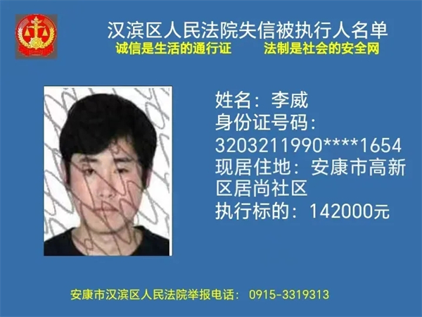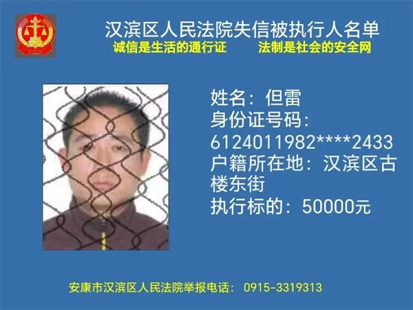 曝光失信 | 漢濱區人民法院失信被執行人曝光名單(2024年第1期)