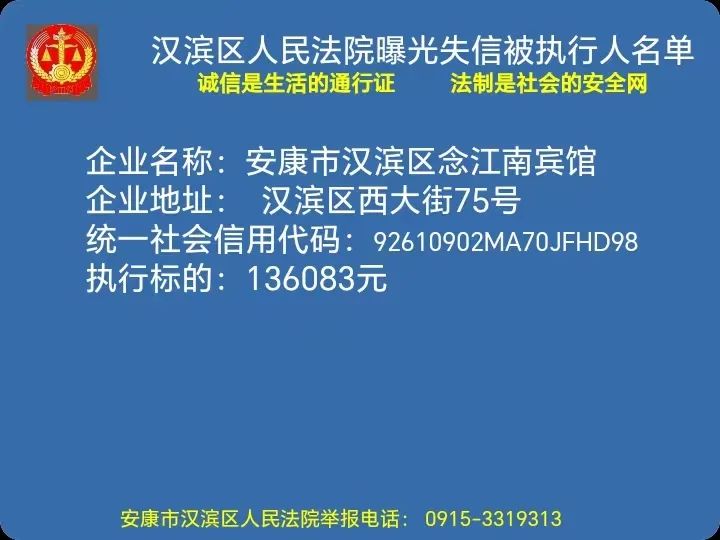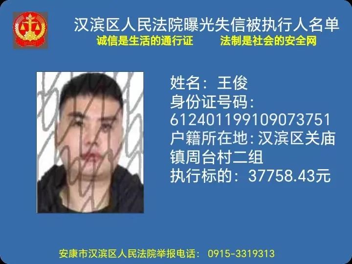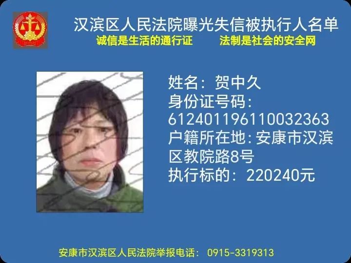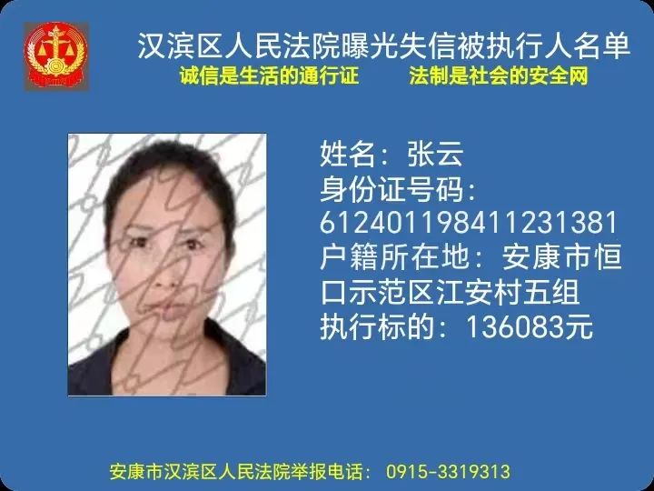 曝光失信 | 安康市漢濱區人民法院失信被執行人曝光名單(2023年第5期)