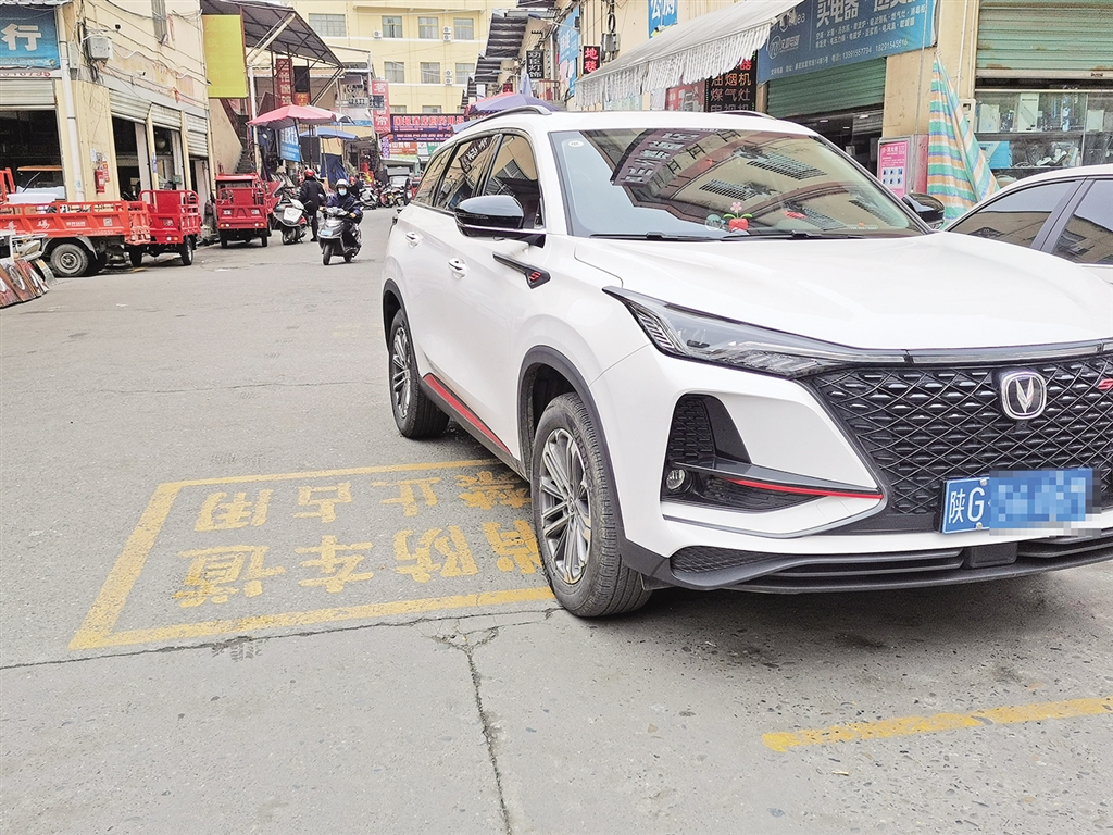 三橋批發(fā)市場(chǎng)內(nèi),一輛白色小轎車(chē)停放在消防車(chē)道標(biāo)識(shí)之上