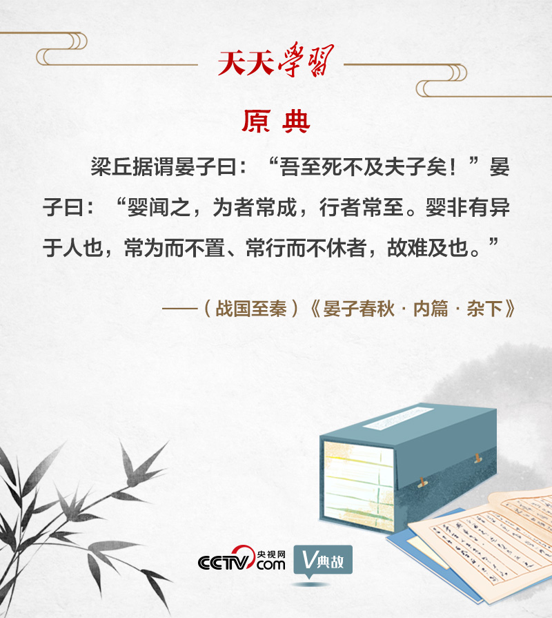 “為者常成,行者常至”,出自春秋時期齊相晏子與大夫梁丘據的一段對話。梁丘據與晏子既是朋友,也是政治對手。一次,他對晏子說:“我恐怕到死也趕不上先生您了!”晏子說:“我聽說,努力去做的人通常可以成功,不倦前行的人常常可以到達目的地。我和別人比并沒有什么不同,只是經常做個不停、走個不停罷了,所以很難被趕上。”