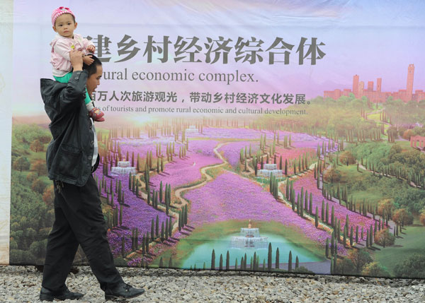 10月22日,重慶市渝北區(qū)興隆鎮(zhèn),當?shù)卮迕駧е『⒃诘旎鶅x式現(xiàn)場參觀效果圖。當日,重慶“五谷地意大利休閑度假農(nóng)場”正式破土動工。該項目按照意大利風(fēng)格設(shè)計,……