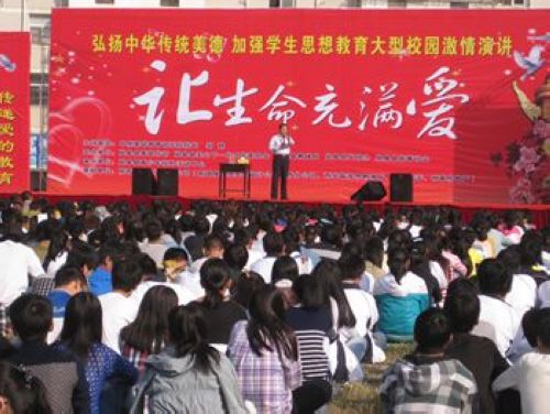 10月10日,由縣委宣傳部、嵐皋縣關心下一代工作委員會、縣教體局、縣文明辦、縣慈善協會聯合舉辦的“讓生命充滿愛”大型校園激情演講活動在我縣體育場隆重舉行。……