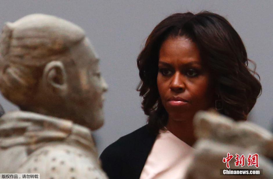 2014年3月24日,西安,美國“第一夫人”米歇爾抵達西安,根據行程安排,他們一行將參觀秦始皇兵馬俑并登上城墻,感受千年古都的魅力。