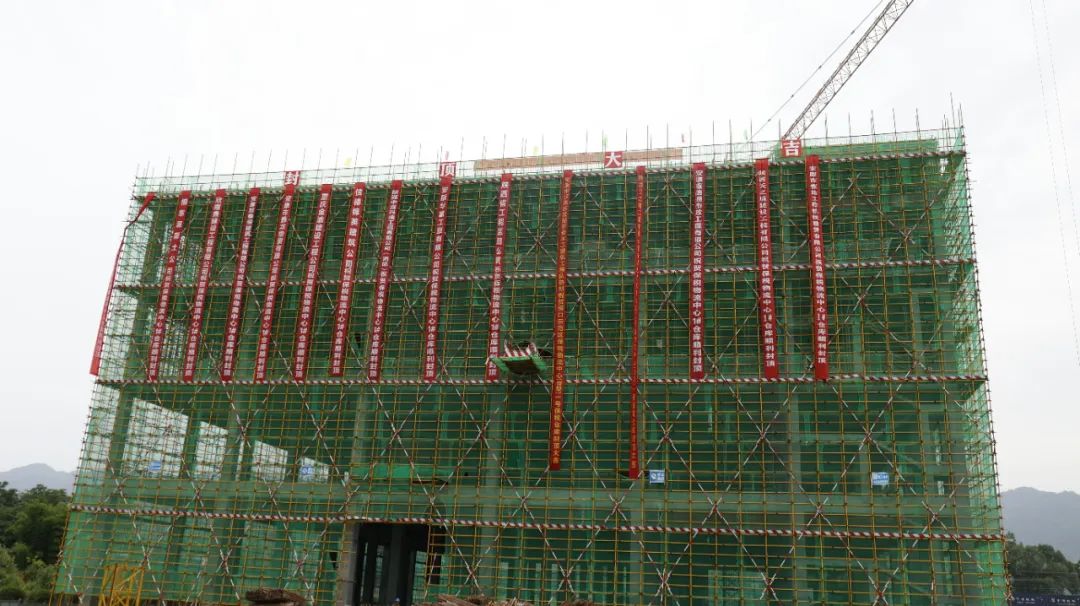 保稅物流中心(B型)項目是無水港多式聯運項目的子項目,總占地面積112畝,總建筑面積5.2萬平方米,總投資3.4億元,主要建設綜合服務中心、停車待檢區、通關卡口、海關查驗場地、監管倉庫、熏蒸處理庫、保稅倉庫及跨境電商產業孵化基地等基礎設施,進而建成具備現代企業管理體制及相應運營模式的現代綜合物流園區。該項目于2023年1月13日開通,于6月19日完成主體施工,歷時158天,順利封頂,正在為12月項目如期交付奮力沖刺。