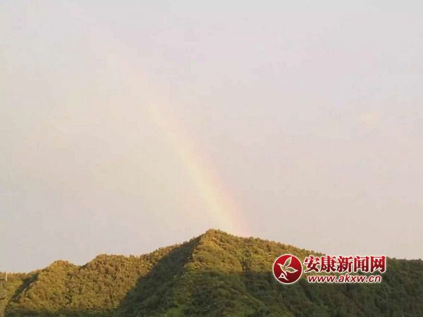 安康新聞網訊 (通訊員 安妮)2015年8月4日傍晚時分,在經歷了8月3日暴風雨襲擊,陜西省寧陜縣的天空中出現美麗彩虹。引來了不少群眾的贊嘆,忍不住停下腳步拍照留念。雨后,彩虹出來了,整座山城的傍晚被夕陽染成了金色,美不勝收。6WK安康新聞網