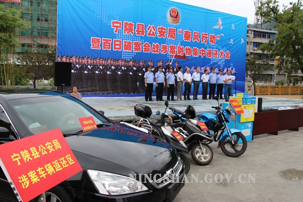 8月4日,寧陜縣召開“秦風行動”暨百日破案會戰涉案財物集中返還大會,向受害群眾返還總價值60余萬元的財物。