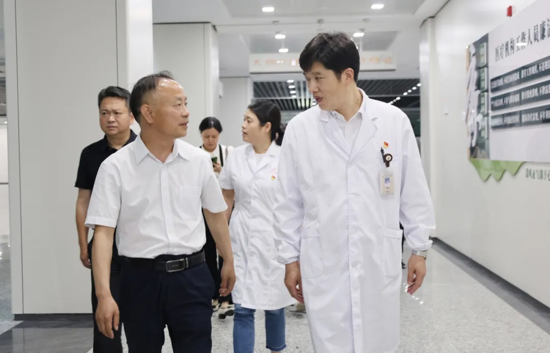 在院領(lǐng)導(dǎo)的陪同下,賈開(kāi)朗一行參觀了醫(yī)院的門(mén)診醫(yī)療街。寬敞明亮的診療環(huán)境,先進(jìn)的設(shè)施設(shè)備,各類科室布局合理給賈書(shū)記一行留下深刻印象。隨后又參觀了醫(yī)院黨史院史館,這里陳列著醫(yī)院的發(fā)展歷程、重要事件和杰出人物,記錄著醫(yī)院從建院初期的艱辛起步,到如今發(fā)展成為一所具有較大影響力的現(xiàn)代化醫(yī)院的歷史變遷。