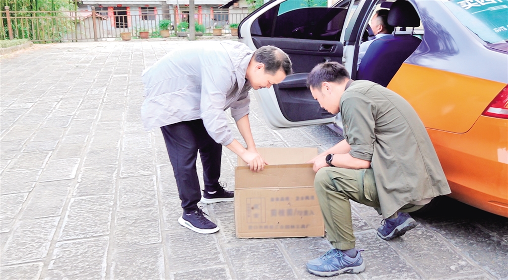 漢陰縣林業(yè)局相關(guān)負(fù)責(zé)人將朱鹮送到寧陜縣朱鹮野化放飛基地管理站。
