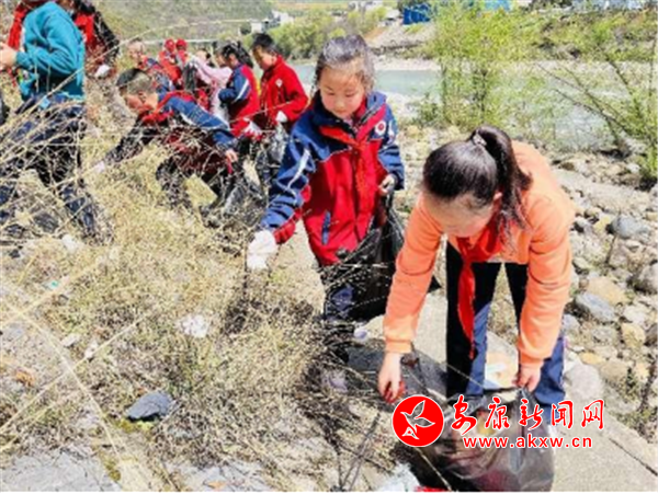 活動中,師生統一著裝,戴著手套,拿著塑料袋和火鉗等工具,沿著指定路線到達旬河邊安全區域。大家或一二結對相互配合,或三五成群分工協作,有的撿、有的夾、有的挖,都忙得不亦樂乎,通過兩個小時的努力,河道周圍煥然一新。