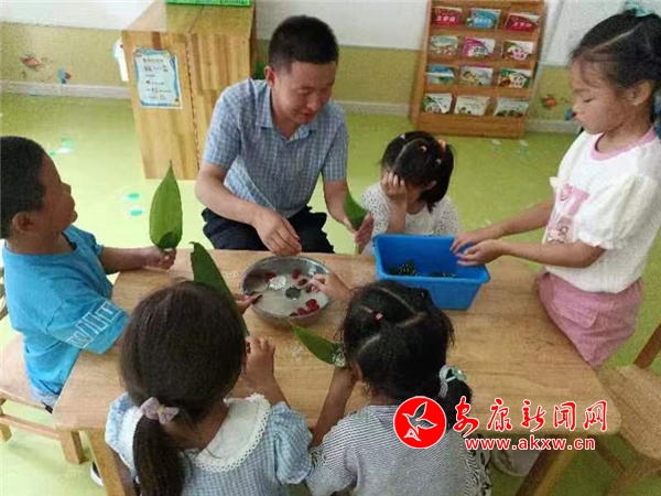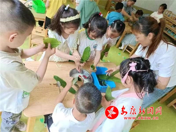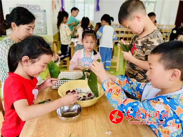 本網訊(通訊員 趙秀珍 田兆林)端午節是我國的傳統節日,有著豐富的民俗民風文化內涵,為了讓孩子們感受傳統節日的文化氣息,增強他們的愛國情懷,6月21日,金寨鎮中心幼兒園開展“濃情端午 粽葉飄香”活動。