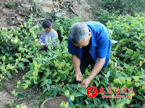近日,旬陽市關口鎮西坡村成了一片忙碌而充滿希望的金色海洋,到處可見一簇簇、一蓬蓬的金銀花綴滿枝頭,青翠的綠葉、淡黃的花瓣隨風起舞,陣陣微風吹過,花朵的清香撲鼻而來。