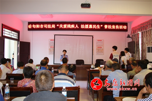 8月13日早上,在旬陽市甘溪鎮(zhèn)甘溪社區(qū)活動(dòng)室里,旬陽市司法局、市婦聯(lián)、市殘聯(lián)工作人員以“嘮家常”的方式你一言我一語地向臺(tái)下的群眾宣講著惠殘政策、助殘法律法規(guī)等知識(shí)。不同以往,本次宣講借助市殘聯(lián)舉辦的殘疾人技能培訓(xùn)契機(jī),專門針對(duì)殘疾人朋友送上了“法治大餐”。