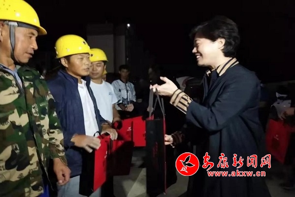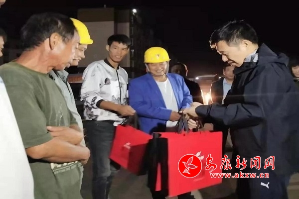 在深夜的施工現場,郭青向工人和基層干部送上了月餅等慰問品,對他們在中秋佳節期間依然堅守工作崗位的敬業精神和舍小家顧大家的奉獻精神表示崇高敬意,叮囑大家一定要注意身體健康和夜間施工安全。