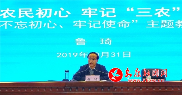 本網訊 10月31日上午,副市長魯琦緊扣“不忘初心、牢記使命”主題教育,以“不忘農民初心、牢記‘三農’使命”為題,給分管部門黨員干部講黨課。市農業農村局、市水利局、市林業局、市民政局、市富硒辦、市供銷社、市殘聯等農口部門黨員干部及市政府辦部分黨員干部參加。