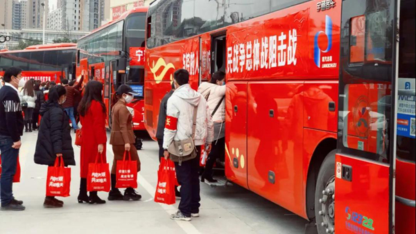郭青在歡送儀式講話中指出,受新冠肺炎疫情影響,很多企業一度停工停產、復工延長,加之省際客運班線尚未完全開通,致使我市大量外出務工人員無法及時返崗就業。群眾的揪心事就是政府的操心事,群眾的困難就是政府的責任,通過開通點對點直達包車等方式,使廣大外出務工人員能夠放心外出、安全返崗,早一點實現致富增收,家人少一點路途牽掛。