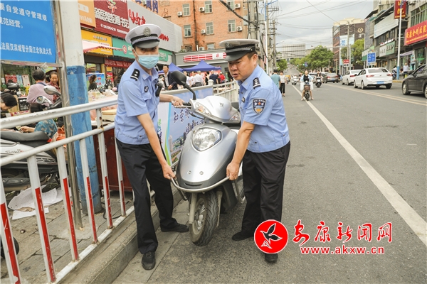7月27日,江北交警、志愿者服務(wù)隊對中渡街交通和市容進(jìn)行治理。(郭曉康)