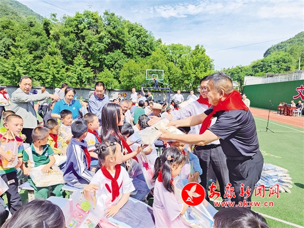 平利縣審計局聯(lián)合興隆鎮(zhèn)蒙溪街小學(xué)開展“六一”送關(guān)愛活動,為蒙溪街小學(xué)全體學(xué)生送去夏秋季校服。彭書梅 攝