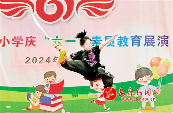 平利縣各小學(xué)、幼兒園開展多種活動,喜迎“六一”國際兒童節(jié)。圖為平利縣城關(guān)小學(xué)的學(xué)生在表演武術(shù)。沈奕君 攝