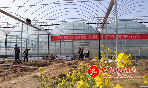 漢濱區(qū)育苗中心一片春意盎然,辣椒、茄子、黃瓜、西紅柿等幼苗青翠欲滴,園區(qū)工人們正在進(jìn)行緊張的育苗工作。