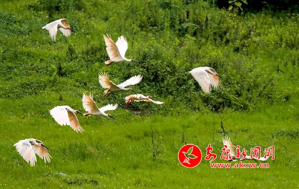 7月18日上午,22只野生朱鹮在漢陰月河草灘出現(xiàn)。據(jù)當(dāng)?shù)厝私榻B,近期就已發(fā)現(xiàn)十幾只朱鹮在此棲息,當(dāng)日朱鹮數(shù)量有所增加。據(jù)悉,我市自然生態(tài)環(huán)境不斷得到保護(hù)后,非常適宜朱鹮的生存,近幾年來已陸續(xù)發(fā)現(xiàn)朱鹮來到我市漢江水域和部分縣域小河覓食。 皮勇維 攝vvc安康新聞網(wǎng)