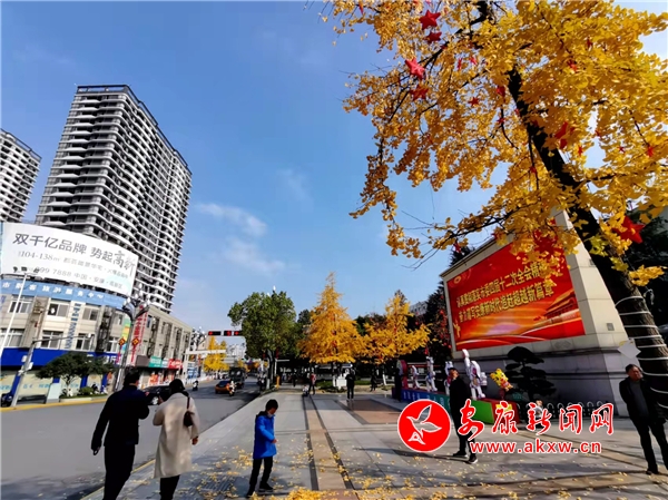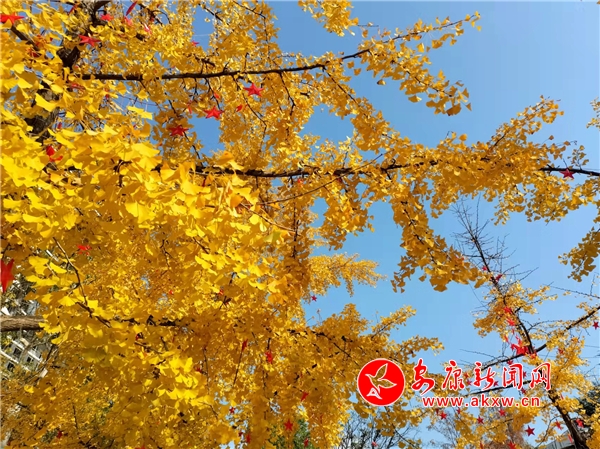冬日暖陽,城區環城南路銀杏樹披上金色的盛裝。(陳榮斌 攝 )